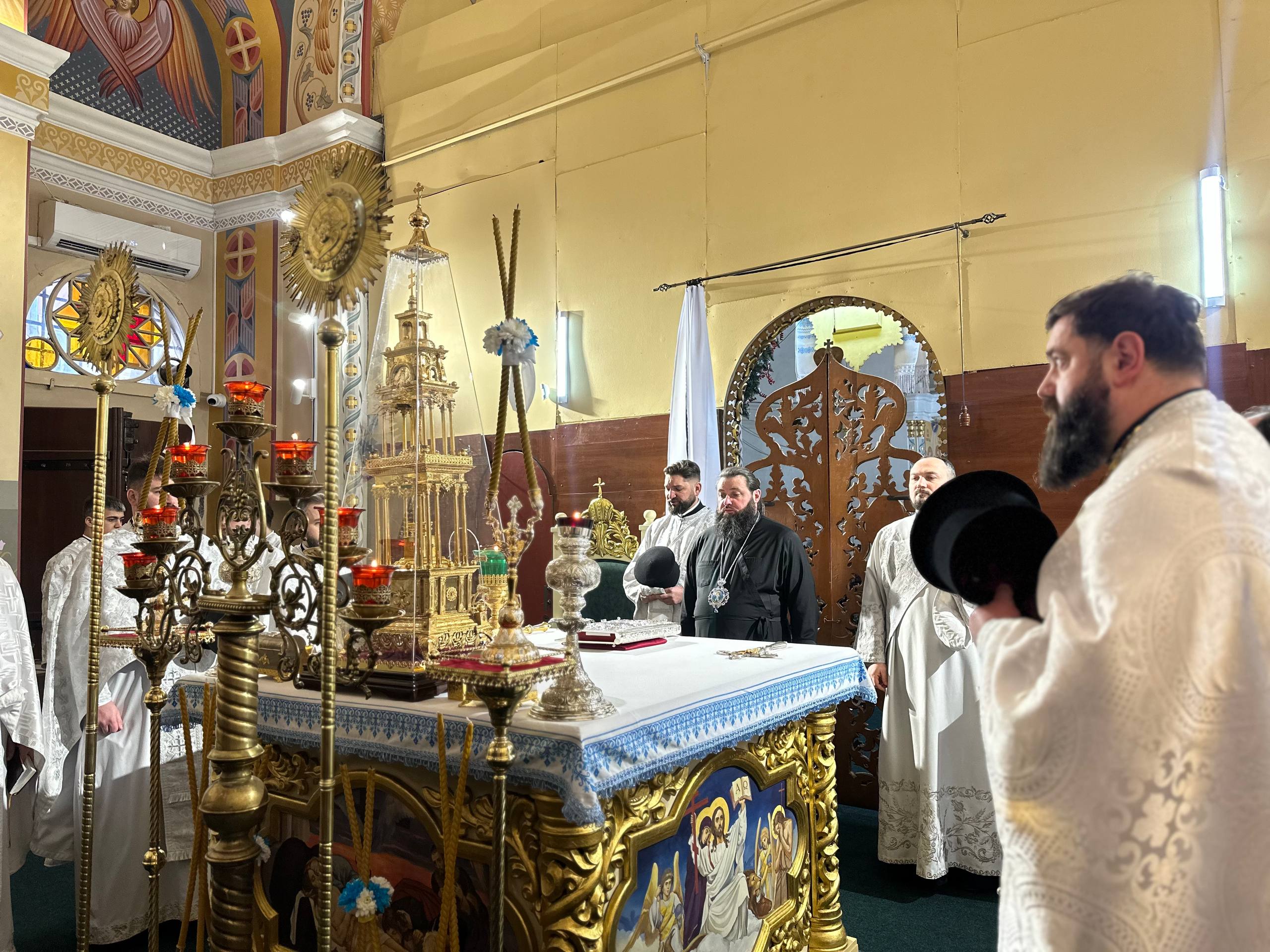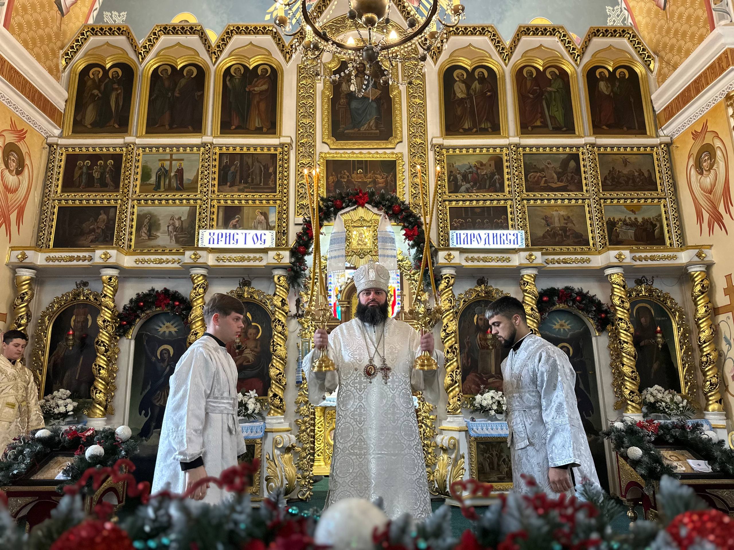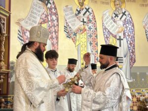 Його Преосвященству співслужили клірики кафедрального собору та протоієрей Юрій Хильчук – клірик Херсонської єпархії.