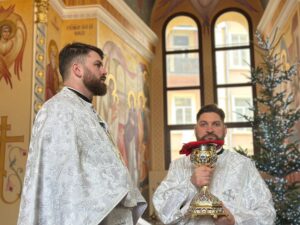На запричастному стиху з повчальним словом до вірян звернувся клірик кафедрального собору протоієрей Володимир Григорович, наголосивши на духовному значенні Навечір’я Богоявлення як часу покаяння, очищення серця та приготування до зустрічі Христа, Який являється світові на Йордані, освячуючи води і всю природу.