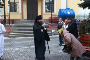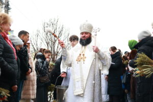 Наприкінці відправи Преосвященний єпископ Феогност звершив на церковному подвір’ї чин Великого освячення води, якою окропив усіх присутніх.