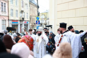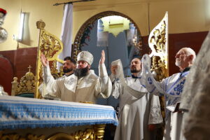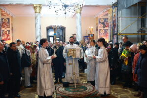 Після прочитання Євангелія Його Преосвященство возніс особливу молитву до Господа в час, коли Батьківщина в небезпеці. Під час богослужіння також лунали молитви за відважних захисників України, за владу, за весь український народ, який переживає важкі випробування, за мир і добробут для рідних та близьких, а також за швидку перемогу над агресором.