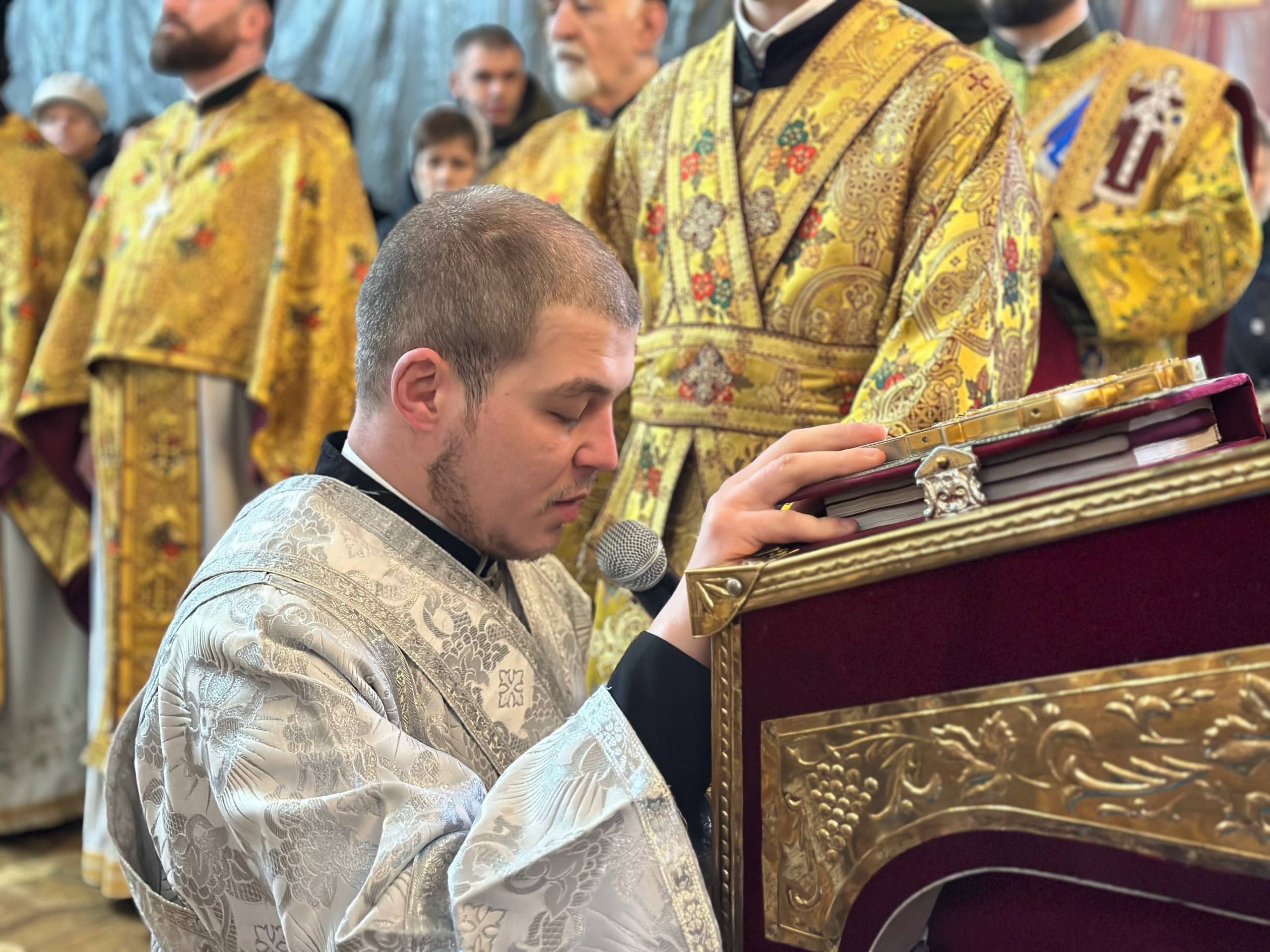 За Божественною літургією була звершена хіротонія. Правлячий архієрей рукоположив у сан диякона Василя Кончу, студента І курсу богословського відділення Чернівецької духовної семінарії.