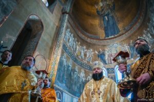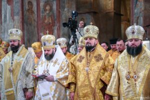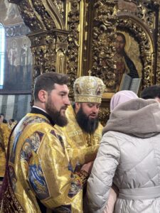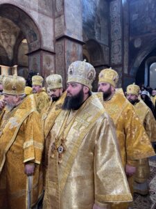 За святковим богослужінням Блаженнішому Митрополиту Епіфанію співслужили архієреї та духовенство з усіх куточків України, а також Екзарх Вселенського Патріарха в Україні – єпископ Команський Михаїл.
