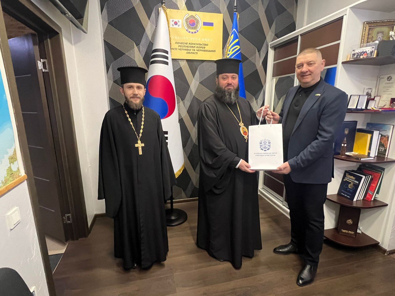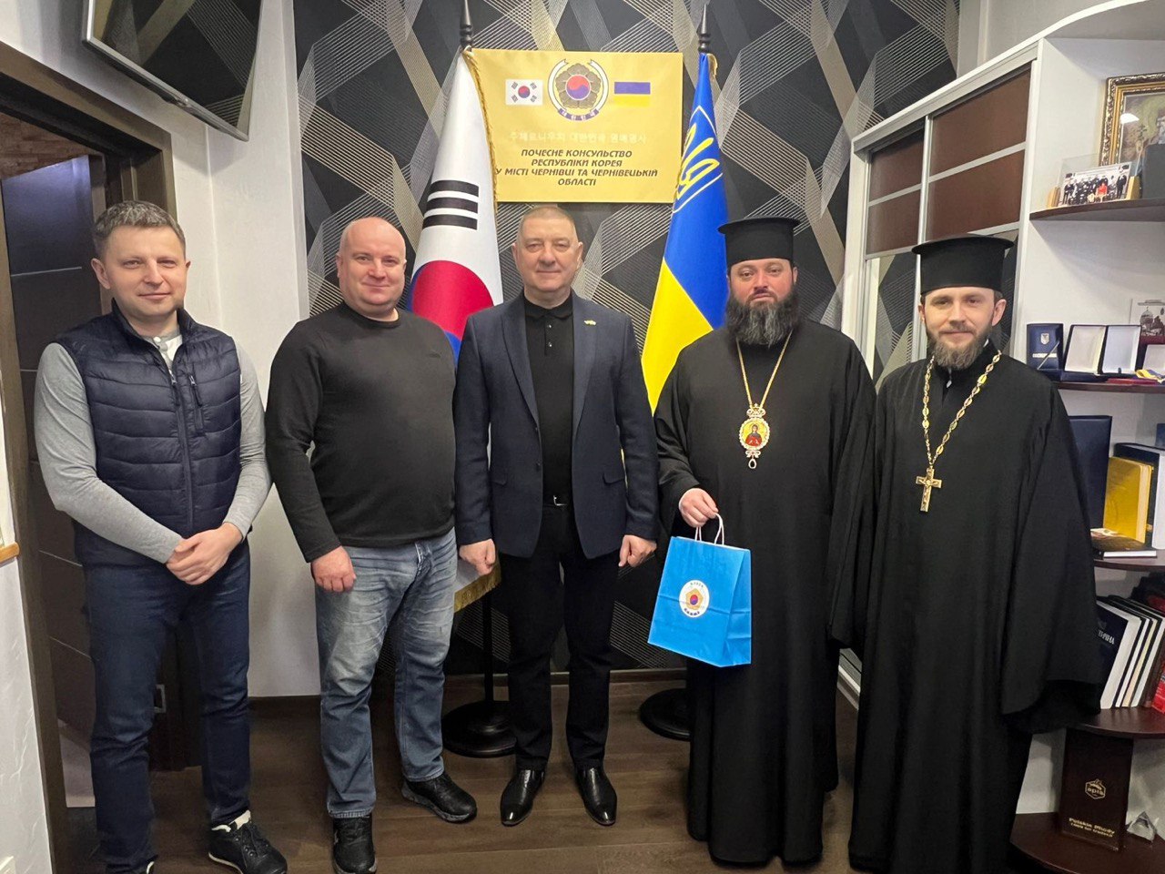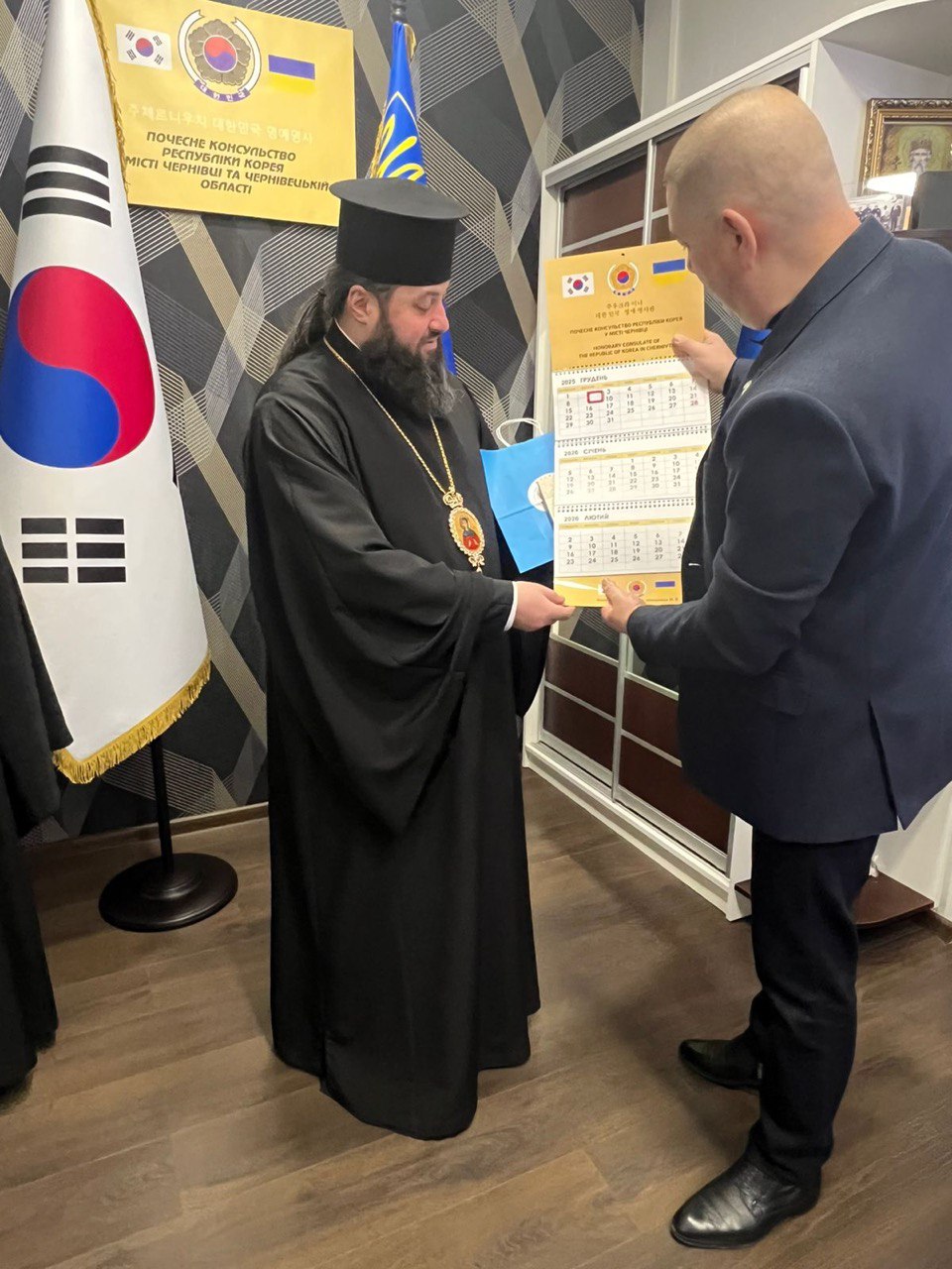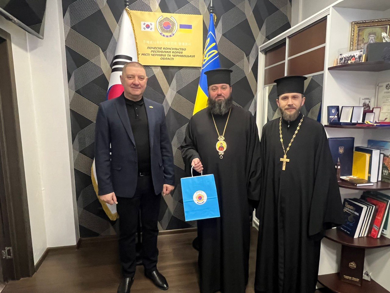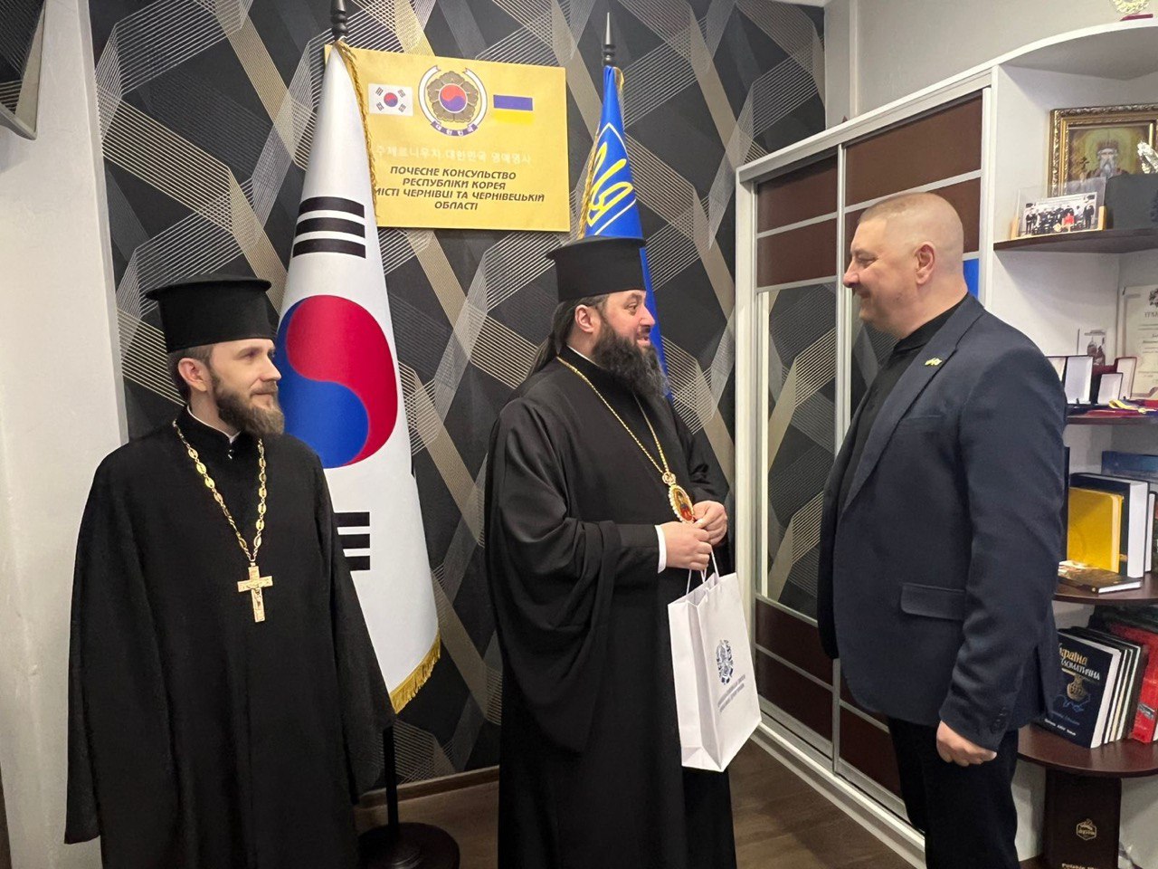 5 лютого 2026 року у Почесному консульстві Республіки Корея у місті Чернівці відбулася зустріч Преосвященного єпископа Чернівецького і Буковинського Феогноста з Почесним консулом Республіки Корея у місті Чернівці Володимиром Кавулею.