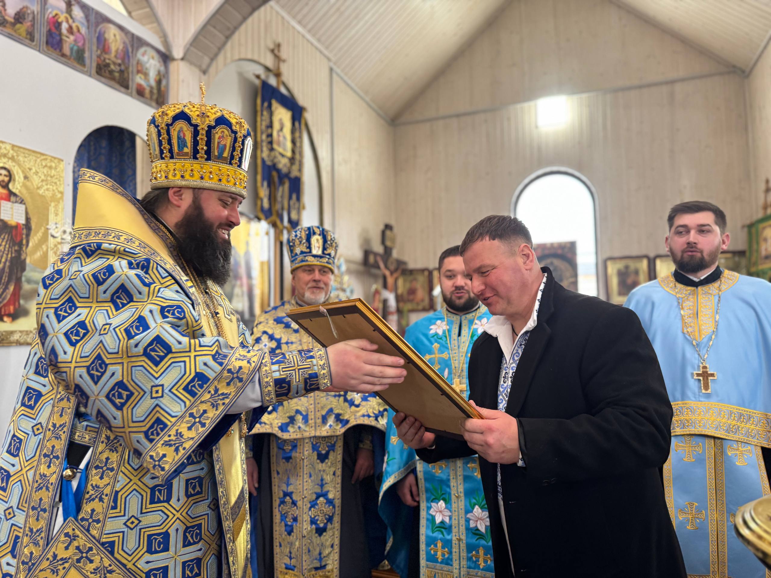 У притворі храму настоятель парафії протоієрей Миколай Тащук висловив щиру вдячність Архіпастирю за архіпастирський візит та запросив очолити святкове богослужіння.