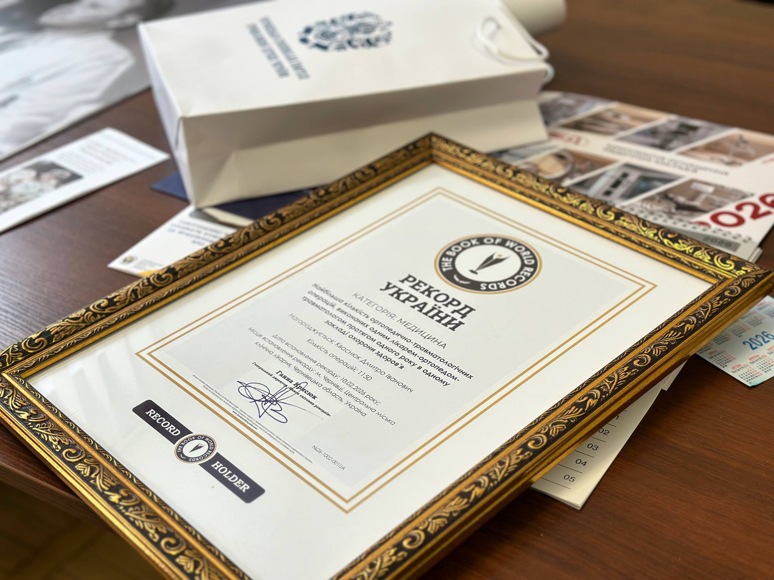 10 лютого 2026 року в місті Чернівці було офіційно встановлено рекорд України в категорії «Медицина» – найбільша кількість ортопедично-травматологічних операцій, виконаних одним лікарем-ортопедом-травматологом протягом одного року в одному закладі охорони здоров’я.