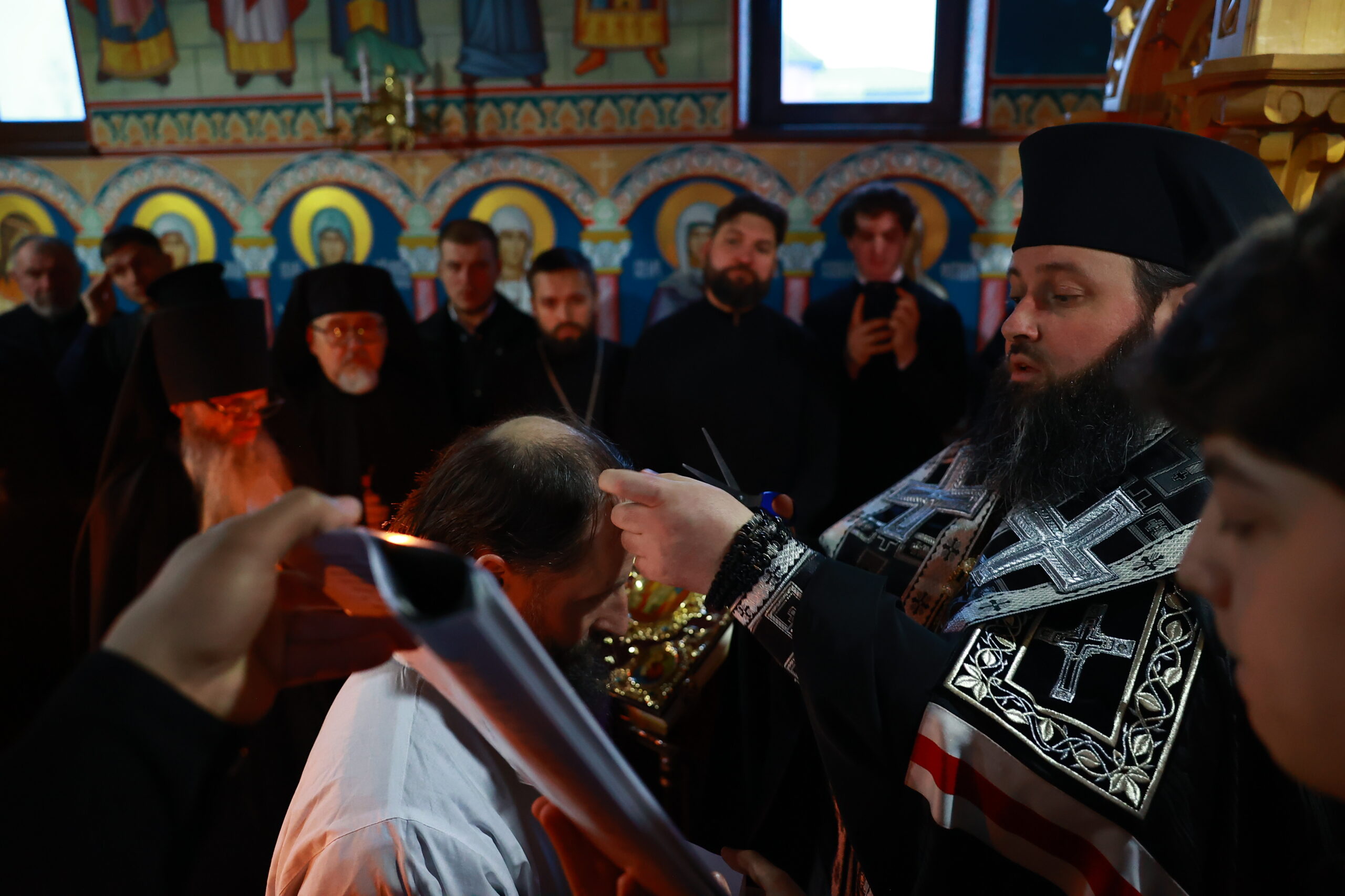 На цю духовну й величну подію зібралися монахи з різних монастирів Православна Церква України. З благословення Високопреосвященного архієпископа Вишгородського Агапіта (Гуменюка), голови Синодальної комісії у справах монастирів та чернецтва, намісника Свято-Михайлівський Золотоверхий монастир, у постризі взяв участь ігумен Лазар (Шишка), насельник цієї обителі.