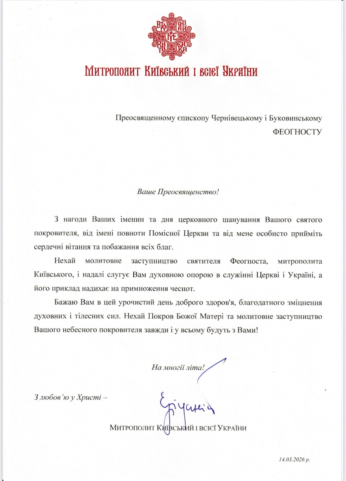 Керуючий Чернівецько-Буковинською єпархією Православної Церкви України Преосвященний єпископ Чернівецький і Буковинський Феогност у співслужінні духовенства єпархії звершив молитву за українських добровольців, українських воїнів, волонтерів та всіх, хто самовіддано стоїть на захисті нашої держави.